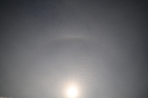 日中は快晴でしたが、日没頃から巻層雲が西から到来。 満月を過ぎた月の光で、タンジェントアークや22度ハロが あらわれ、肉眼でもよく見える明るさでした。 |