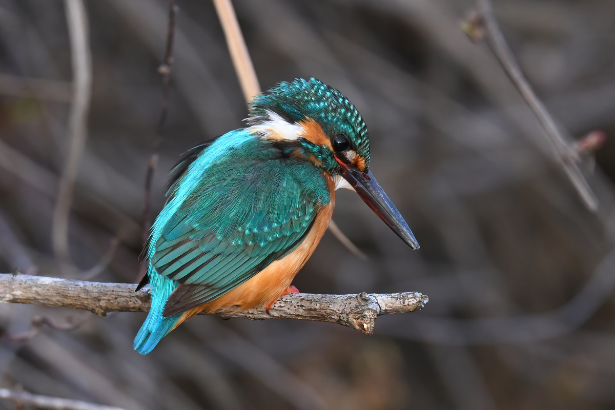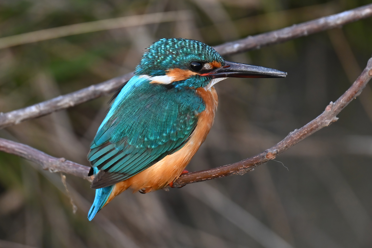 | 昼頃、菰野町の森では、時間帯のせいか冬鳥は少なめ。 シジュウカラ、ジョウビタキ、シロハラなどはいました。 日没の頃、桑名市員弁川付近の用水路をチェックしに行くと、 今日もぽつんと♀待ちポジションにカワセミ♂がじっとしていました。 厚い雲に遮られての日没のため、夕陽による色温度の低下は少なく まだ明るい空の拡散光による色合いのカワセミ♂でした。 |