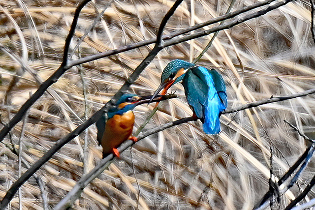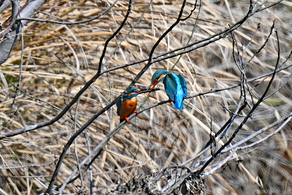 | 「カワセミ、♂からメスへ 餌渡し」(桑名市) | |||
