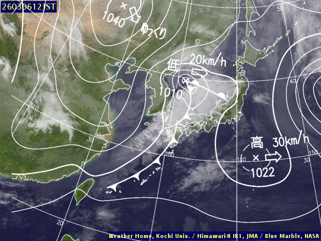 (高知大学気象情報頁赤外画像と気象庁速報天気図を合成)