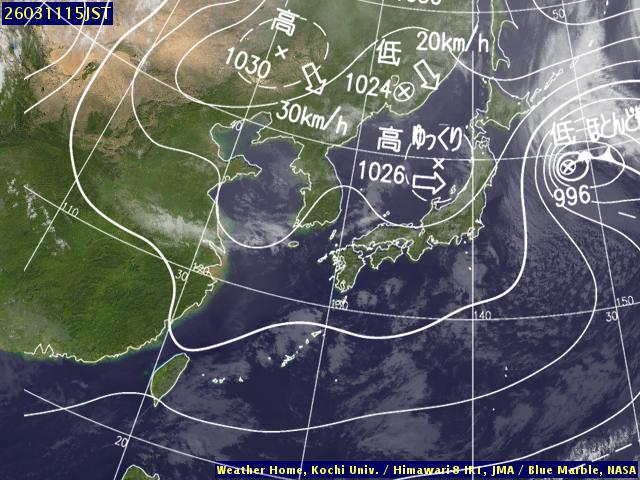(高知大学気象情報頁赤外画像と気象庁速報天気図を合成)