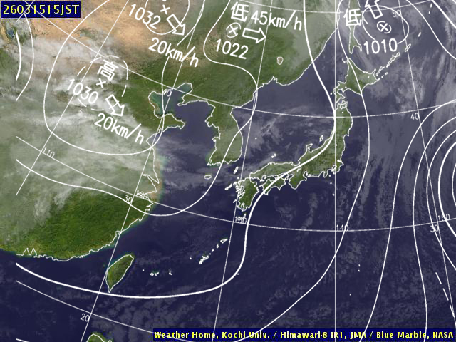 | 地上(高知大学気象情報頁赤外画像と気象庁速報天気図を合成) | |||